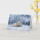 Winter solstice card with a beautiful image of a fox family in the snow. A mama and two pups warming each other in the cold beauty of the deep winter. A pretty yule card.