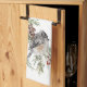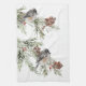 Winter Sparrow Birds Spruce Tree Cones & Berries Tea Towel