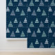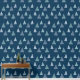 Serene and minimalist pattern featuring a spruce tree forest under snow with subtle dotted lines on a dark blue background. A repeating motif of snowy pine trees creates a tranquil forest scene across the surface. The simplicity of the tree silhouettes contributes to the overall calming aesthetic. Delicate dotted lines interspersed among the trees. The colour palette is kept muted, emphasizing natural tones. This simple yet elegant pattern brings a sense of calm and nature-inspired beauty to any setting.