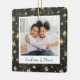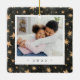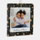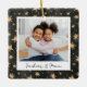 A sweet double sided photo ornament displaying a favourite photo on each side, on a black watercolor background dotted with golden stars. Personalise with a custom caption on the front in handwritten lettering, and add the year to the back.