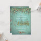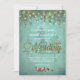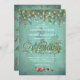 Pretty and rustic Winter or Fall wedding invitation with fir tree and berry branches, sting of fairy twinkle lights against a watercolor forest scene. FAUX gold glitter font on Wedding, not real gold.