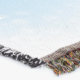Side profile of a woman with sugar skull day of the dead make up on. All blue in colour with snowflakes all around.
