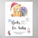 "There's a Beary Sweet baby on the way". Celebrate with this teddy bear themed baby shower party! Watercolor cute teddy bear with christmas gift, in santa hat. On the reverse side of the card are holiday christmas pattern (candy cane, christmas tree ball toy, christmas socks). Matching items available.