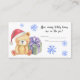 Watercolor cute teddy bear with christmas gift, in santa hat. On the reverse side of the card are holiday christmas pattern (candy cane, christmas tree ball toy, christmas socks).