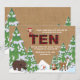 A winter/December-theme invitation with a burlap background and snow-covered trees featuring woodland animals and the holiday elf. The elf can be dragged to any location, made larger or smaller or eliminated. The perfect way to celebrate a winter, tenth birthday! (<a href="https://www.freepik.com/free-vector/winter-animal-set-of-five_1488911.htm">Designed by Freepik</a>). (<a href="https://www.freepik.com/free-vector/christmas-trees-pack_755817.htm">Designed by Freepik</a>). <br/><br/>The card is easy to customise with your wording, font, font colour, paper shape options and choice of six paper types.<br/><br/>Not exactly what you're looking for? All our products can be custom designed to meet your needs at no extra charge.<br/><br/>Simply contact us at heartfelthelper@gmail.com.<br/><br/>Coordinating products available: Just ask us!