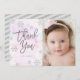 Say thank you with this stylish and chic photo card, featuring chic script typography in pink glitter with faux silver glitter snowflakes. Add your photo and text, with room for an additional message on the back.