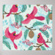 Whimsical repeating pattern. Christmas and winter theme. Red Cardinal birds, pinecones, berries and branches. Perfect for textile, wrapping, print, web and all kinds of decorative things.