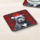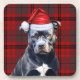 Fun coaster set for the person who loves their Bluenose Pit Bull. This one wears a Santa hat for a stylish approach to the holiday season, and sits cutely against a festive red background to decorate your home or office with seasonal pet lover joy.