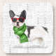 Fun coaster set for the person who loves their Boston Terrier. This one wears red sunglasses and a green winter scarf and stands proudly against a faded WOOF background to decorate your home or office with seasonal pet lover joy.