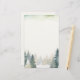 This letter paper showcases a delightful hand painted style watercolor illustration of snow dusted pine trees standing gracefully against a soft blue winter sky. The gentle snowflakes and charming evergreens evoke a peaceful, wintry ambiance, making it perfect for letter writing, note taking, to do lists, and sending warm seasonal wishes. Its serene design brings a touch of seasonal beauty and calm to any message during the holiday season.