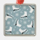 Seamless winter themed pattern with ice skates, snow, snowflakes and stars decoration on turquoise background