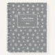 Winter themed notebook that features a modern white snowflakes vector pattern on a grey background. Personalise this festive and winter themed design with the name or text of your choice.