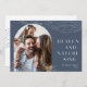 Send holiday greetings in chic style with these elegant and modern photo collage cards featuring a single vertical photo in an arch layout, adorned with line-drawn embellishments at the top and bottom. "Heaven and Nature Sing" appears alongside in modern lettering, with your family name and the year tucked into the lower right corner. A minimalist style in on-trend colours for your Christmas 2021 greetings.