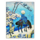 Two winter travelers in a snowy landscape. The one on horseback is dressed in elegant robes while the porter, carrying bundles on foot, is roughly dressed. They pause during a snowstorm before crossing a narrow natural bridge. From an original 19th century (1890) Japanese full colour woodblock print by Katsushika Hokusai. All Rights Reserved © 2012 padre art