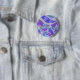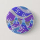 A modern, stylised winter landscape with frosted pine trees and sparkling snowflakes. Button with a blue, purple, silver, grey and white customisable design for you to personalise with your own text, images and ideas. A digitally enhanced coloured pencil drawing by Jess Perry.