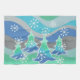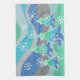 A modern, stylised winter landscape with frosted pine trees and sparkling snowflakes. Kitchen towel with a green, blue, silver grey and white customisable design for you to personalise with your own text, images and ideas. Image created using a digitally enhanced coloured pencil drawing.