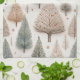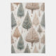 A kitchen towel showcasing an enchanting collection of winter trees illustrated in a soft and detailed style. It features a variety of tree types—lush evergreens, delicate bare branches, and stylized botanical forms—in muted hues of sage green, dusty rose, warm beige, taupe, and soft cream against a light neutral background. This is perfect for nature lovers, minimal holiday decorators, botanical art fans, and anyone who enjoys calm, elegant winter aesthetics.