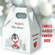 A little sweetheart is on the way! Winter boy baby shower small favour boxes featuring adorable baby penguin with a red heart in the frosty forest. Perfect for a winter baby shower and around the Valentines day time. You can choose from 3 sizes of these gable favour boxes. Easily personalise the text. - Kate Eden Art