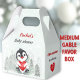 A little sweetheart is on the way! Winter boy baby shower medium favour boxes featuring adorable baby penguin with a red heart in the frosty forest. Perfect for a winter baby shower and around the Valentines day time. You can choose from 3 sizes of these gable favour boxes. Easily personalise the text. - Kate Eden Art