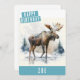 A cute watercolor birthday card featuring a moose celebrating winter on the front with "Happy Birthday" in a white, all-caps bold font. Personalise the front by adding your name(s). The back of the card features space for your typed or handwritten message.