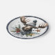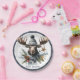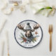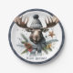 Birthday paper plates featuring a watercolor Moose. Winter vibes, snowflakes. Customisable.