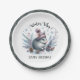 Birthday paper plates featuring a watercolor Mouse. Winter vibes, snowflakes. Customisable.