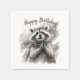 Cute birthday party paper napkins featuring a racoon under the snow.