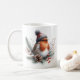 Winter vibes mug featuring a robin with a hat. Customisable.