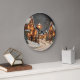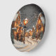 Winter village aglow with streetlights large clock