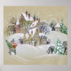 Winter Village: Snowy, Illustrated Landscape. Poster