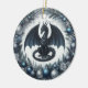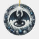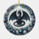 A majestic black dragon rests at the heart of a festive wreath, its wings unfurled in quiet vigilance. Surrounded by silver pinecones, icy ornaments, and wintry botanicals, this mythical guardian merges fantasy with seasonal elegance. The cool palette of blues, blacks, and silvers evokes a mystical winter realm, where ancient magic and holiday wonder intertwine.