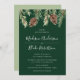Winter Watercolor Pine Cone Green Wedding Invitation