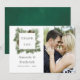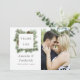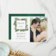 Trendy colorways green and white winter wedding watercolor pine cones thank you photo cards.