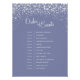 Wedding order of events guest signage timeline blue grey snow graphic overlay design. Simple falling snow on blue grey sky with white text, personalise with your own wedding time schedule of events poster. Uniquely designed by www.mylittleedenweddings.com on Zazzle.