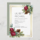 Beautiful burgundy roses, eucalyptus leaves, pine cones, and other festive Winter elements feature on this modern winter wedding item. Part of a larger collection that includes budget wedding invitations, rsvps, save the dates, thank you stickers, gift labels, bridal and wedding party gifts, thank you photo cards, and more. for a detailed free guide on how to plan the perfect winter wedding with lots of winter wedding theme ideas visit weddingdesignchic.com.