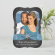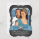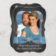 This modern and trendy bracket shaped black and white chalkboard look winter wedding invitation with photo, has an icy steel blue PRINTED ribbon with a bow and glittery silver snowflakes on it. There is also the romantic "This day I will marry my best friend, the one I laugh with, live for, dream with, love" verse on it. Upload your own engagement photo into the space provided. All the back text is a template, so you can change it to have your wording and information. It's perfect for a casual or informal winter or Christmas wedding. The invitation is shown here on basic paper, but it would look lovely on recycled, linen, felt, or the metallic papers in ice or champagne. If you would like a subtle lustre to the paper, choose the metallic papers. If you want a nice heavyweight texture, choose felt paper. ****PLEASE NOTE that everything will print as it appears on your monitor, so if you have typos, alignment, or sizing issues, please contact me for help BEFORE you order. I can't help with anything once the order has been placed with Zazzle. If you need any other matching items, please email niteowlstudio@gmail.com.