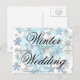A beautiful winter wedding invitation card featuring snowflakes in blue white and silver.