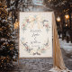 Welcome your guests in style with this elegant winter-themed wedding sign. Featuring a luxurious cream satin bow, delicate snowflakes, and soft floral arrangements in blush pink and dusty blue, this design adds a refined winter-garden charm to your celebration. The neutral palette—highlighting white roses, eucalyptus, and pinecones—brings a romantic seasonal touch perfect for winter weddings, holiday nuptials, and seasonal celebrations. Easily personalize to create a warm and memorable entrance for your special day.