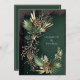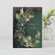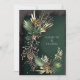 Beautiful Winter Wedding invitation in a dark hunter green with pretty pine cones, snowflakes and golden leaf accents. #generativecontent