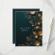 Beautiful Winter Wedding response card in a dark hunter green with pretty pine cones, pine branches and golden leaf accents.