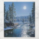 Beautiful Winter Forest, with snow covered pine trees lining the bank of a beautiful sparkling river. There is a lovely, bright full moon in the sky. Personalise with your text, also great for Christmas or any Winter Celebration.