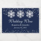 Mini Winter wedding sparkling wine bottle labels done in navy blue, with graphics of silver glitter and snowflakes. Personalise the text for your wedding favours.