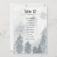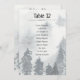 This modern and elegant table number place card features a serene watercolor background of misty trees, creating a calm and nature-inspired atmosphere. The table number is prominently displayed in a bold, easy-to-read font, making it clear and accessible for guests to locate their seating. Beneath the table number, the names of the guests assigned to that table are neatly listed in a simple and clean font, maintaining the minimalist yet stylish design. Perfect for nature-themed or outdoor weddings, this place card effortlessly combines functionality with a refined, rustic charm.