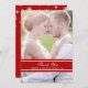 Winter Wedding custom photo thank you for the gift cards in elegant red and white festive snowflakes pattern. Fully customisable, two sided, available in many matching products for all your wedding or party needs. Contact us to request a colour change or custom design. Perfect for a Christmas wedding.