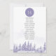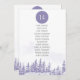 Winter wedding table seating chart with the number and guest list. Scenic watercolor design in shades of lavender and grey. The snow scene features a romantic mountain forest landscape with pine trees. The table number and guest seating list is editable and displayed on both sides. If you would like matching products, please browse my Winter Forest collection.