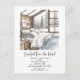 This illustrated change-of-address postcard brings all the après-ski charm with none of the lift lines. Featuring a snow-dusted cabin bedroom and pine-framed mountain views, it’s the paper equivalent of saying, “Come visit… and bring slippers.”