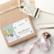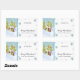 COLOR PALETTE: Modern Christmas Trend of Light Blue and White with lime yellow, gold, green and red. DESIGN COLLECTION: With the text, "A Gift For: and Merry Christmas, from your family name", this is a whimsical, fun, Christmas and Winter themed gift package topper sticker, seal or decoration set that has been made of hand panted watercolor artwork from Audrey Jeanne Roberts. The Christmas trees are decorated with a draped red garland, swirling star tree toppers in piles of snow with hand made star snowflakes falling in the background and baby polar bears playing with each other with bows around their necks. This design is available on a wide range of products.