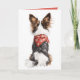 This charming illustration captures the back view of a Papillon dog adorned with a festive red bandanna featuring white snowflakes. The dog’s luxurious fur, blending shades of brown, black, and white, creates a striking contrast against the white background. The whimsical detail in the fur texture and the playful touch of the holiday accessory evoke a warm and joyful winter spirit. Perfect for dog lovers and holiday enthusiasts alike!