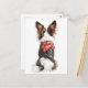This charming illustration captures the back view of a Papillon dog adorned with a festive red bandanna featuring white snowflakes. The dog’s luxurious fur, blending shades of brown, black, and white, creates a striking contrast against the white background. The whimsical detail in the fur texture and the playful touch of the holiday accessory evoke a warm and joyful winter spirit. Perfect for dog lovers and holiday enthusiasts alike!
