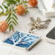 Winter theme blue and white watercolor painting of a white birch tree with snow background. Arty original artwork with a Christmas theme. Blue and white Christmas.